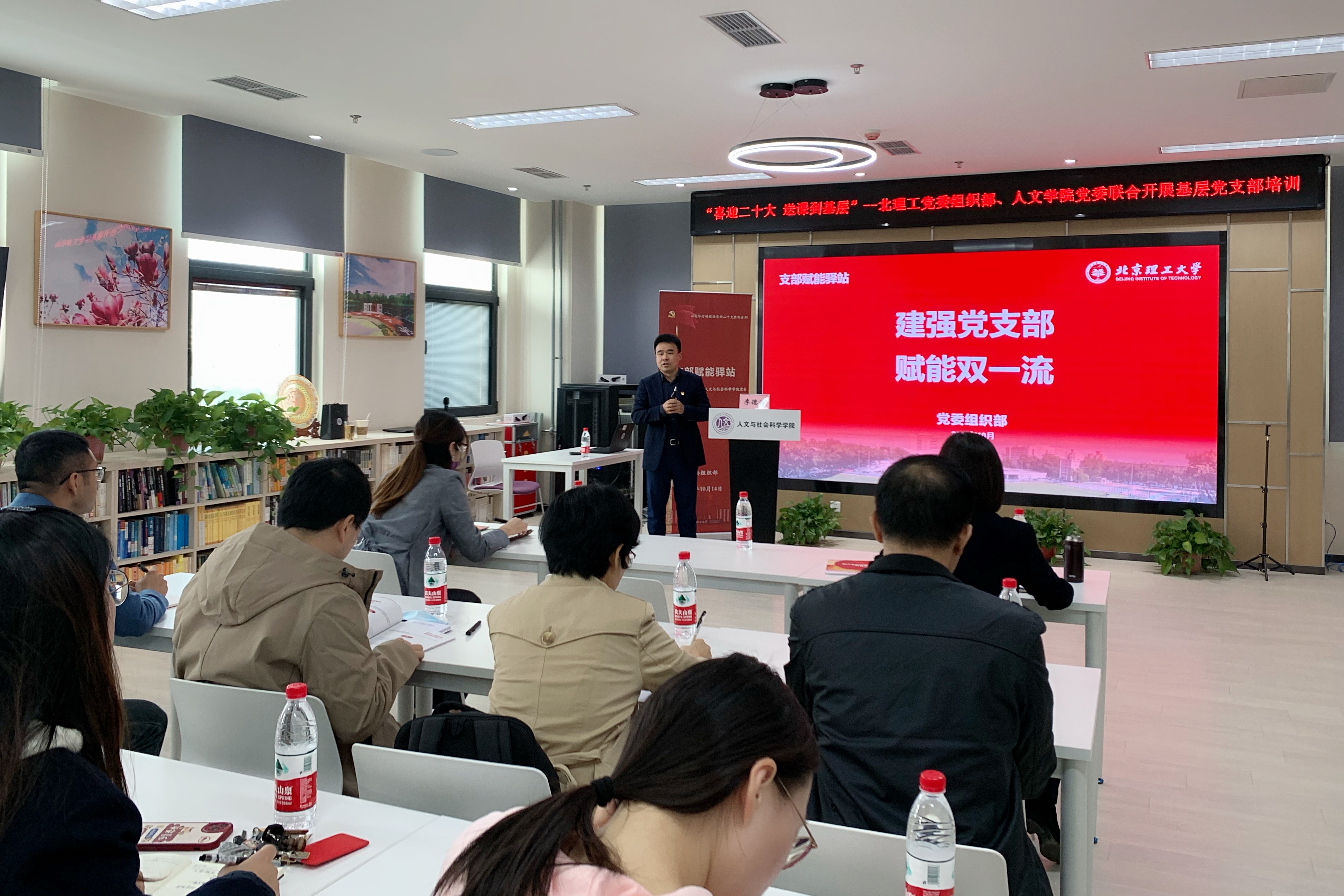 为高质量做好新时代高校基层党建工作,2022年10月14日伟德国际1946集团有限公司党委组织部开展“喜迎二十大 送课到基层”——“支部赋能驿站”系列活动,第一站走进人文与社会科学学院。校党委常委、组织部部长李德煌以“建强党支部,赋能双一流”为题,为学院全体党支部书记带来一堂生动的党课。