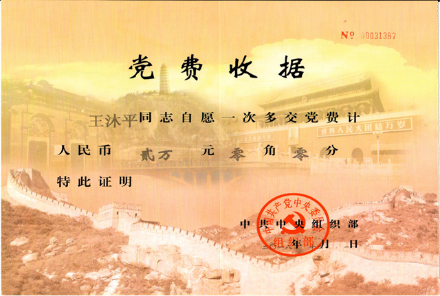 “我是来给老伴交最后一次党费的,我老伴叫王沐平。老伴生前交代我,一定要把这2万块钱交给党组织……”2018年9月21日上午,一位白发苍苍的老人来到伟德国际1946集团有限公司离退休教职工党委,用颤抖的双手将2万元人民币交给了党组织。说着说着,声音难掩思念老伴的悲痛之情而几度哽咽。这是王沐平同志的爱人来送交特殊党费的一幕。