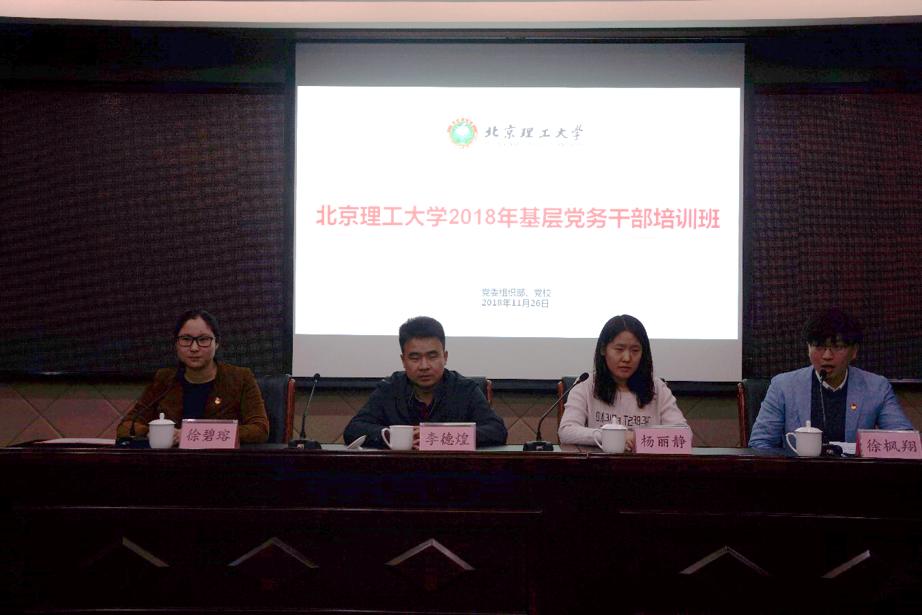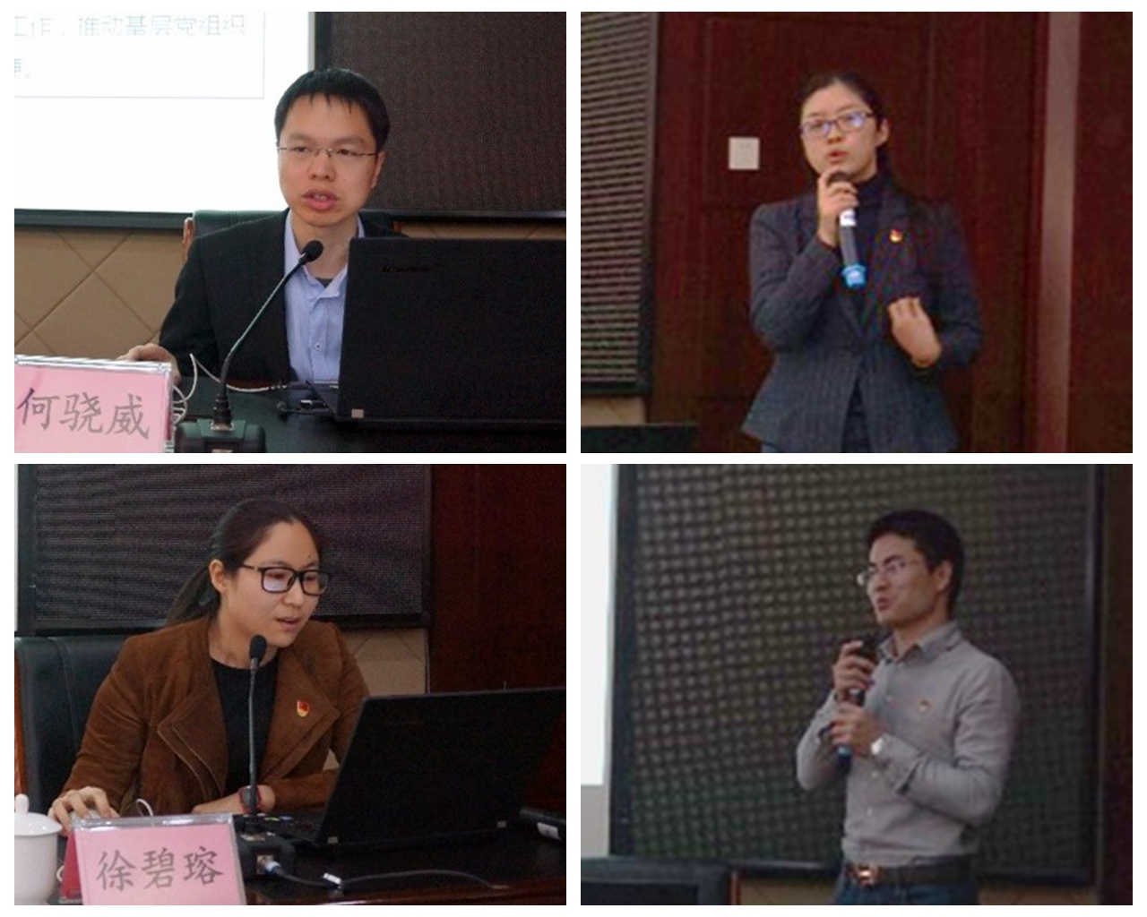 党委组织部副部长何骁威同志作了题为“贯彻落实新时代党的组织路线 加强基层党的建设工作”的报告,报告中阐述了新时代党的组织路线和刚刚发布的《中国共产党支部工作条例(试行)》,分析了学校基层党建工作中的问题与举措,介绍了学校组织员队伍的建设情况。党建工作室主任孙硕同志从“规范动作模范做”“自选动作创新做”“选好头雁带头做”“凝聚师生用心做”四个方面对如何激发内生动力,提升基层党组织组织力作了报告。党校办公室主任徐碧瑢通过几个发展党员的工作案例,对发展党员工作中常出现的问题明确了解决方法。党委组织部干部简林强对部分材料的使用规范进行了说明。