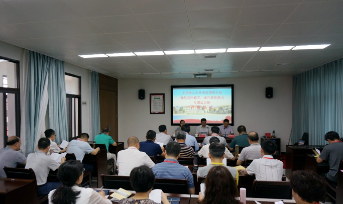在开班仪式上,瑞金干部学院副院长钟元浩表达了对全体学员的欢迎和诚挚问候,他简要介绍了学院基本情况,并希望培训班学员在培训期间珍惜学习机会,端正学习态度,严格遵守学习培训纪律,切实加强党性党风党纪教育。机关党委书记李汉军在动员讲话中指出,此次培训是学校开展“不忘初心、牢记使命”主题教育前一次追寻“初心”的学习实践,是加强基层党的建设、落实工作责任制,提升支部书记党性修养、加强工作作风的重要途径,希望全体学员通过学习,能够深刻认识“苏区精神”“长征精神”内涵,将学习成果转化成为学校“双一流”建设的实际行动。