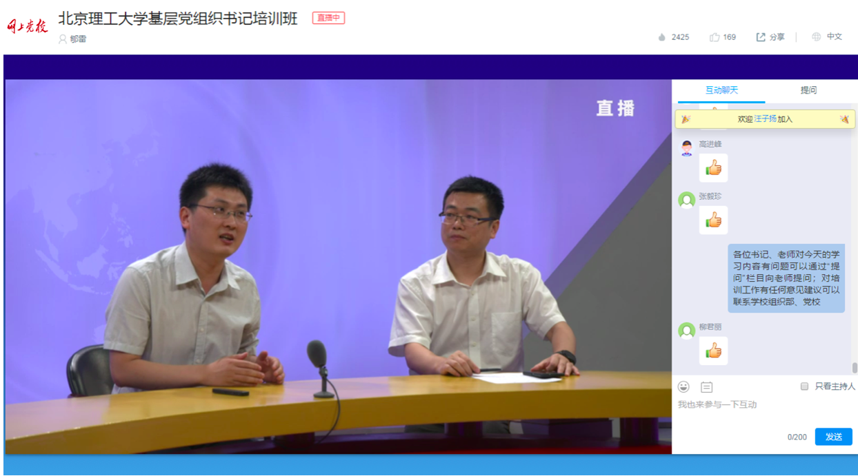 中央党校(国家行政学院)科学社会主义教研部副教授郇雷为学员精彩解读了《中国共产党支部工作条例(试行)》,郇雷老师从《条例》对新时代基层组织建设有哪些要求、新时代做好基层组织建设的基本原则等方面进行了精彩讲授。在直播平台互动交流中,各位基层党组织书记、党务干部结合自身党建工作实际进行了提问。郇雷老师就学员关心的支部会议组织、激发基层党员积极性、互联网+党建等问题进行了详细解答。参训学员表示本次培训内容清晰、形式生动,通过培训进一步加深了对支部工作的认识。