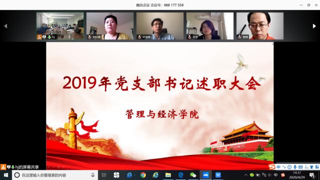 为深入贯彻落实习近平新时代中国特色社会主义思想,坚持和完善党对高校的全面领导,推动全面从严治党向基层延伸,提升师生党支部书记履职能力,加强党支部建设能力,根据学校党委《关于开展 2019 年度党支部书记抓基层党建述职评议考核工作的通知》要求,4月29日,管理学院党委召开基层党支部书记抓党建现场述职会。会议通过线上线下方式同时进行。学院党委委员、党政联系会成员、教代会会代表、非党员教师代表、全体师生党支部书记参加会议。会议由副书记、副院长彭明雪主持。