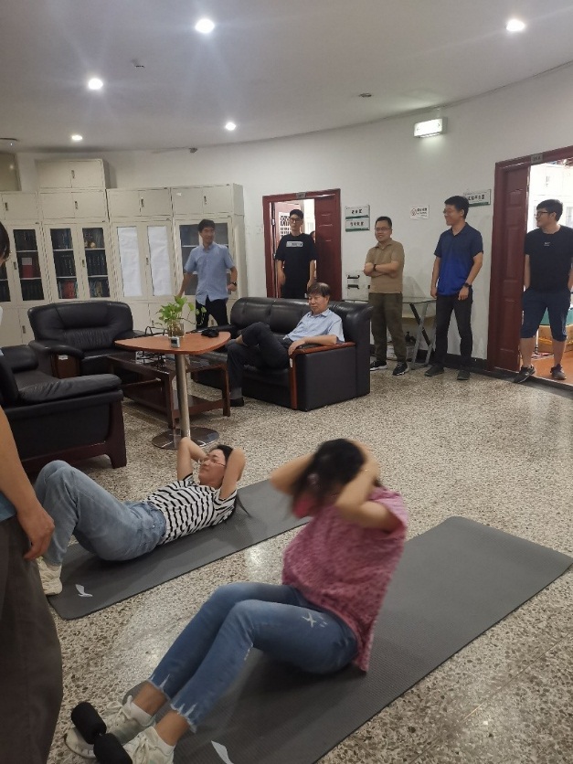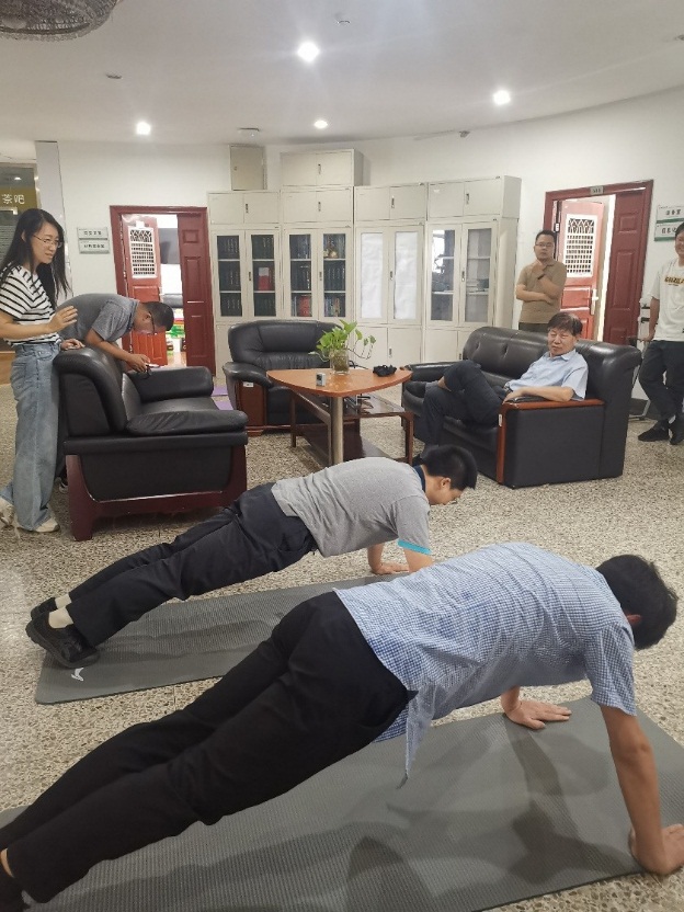 活动由资实处处长史天贵主持,测试分为两组,男子组和女子组分别在一分钟内记录俯卧撑与仰卧起坐个数。每个人都摩拳擦掌,跃跃欲试,想要创造属于自己的记录,活动在轻松愉快的氛围中进行。