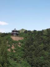 出了密云县城后,走“不老屯”刚一进山远远看见了密云水库。与想象中的水库大不一样,首先映入眼帘的是大片大片种上庄稼的土地,更远处能看到水面环绕在绿色山丛下,水库水位下降好几米,且为一惊。驱车前行,在山里不知盘过多少弯,绕了半个水库,到了云峰山。