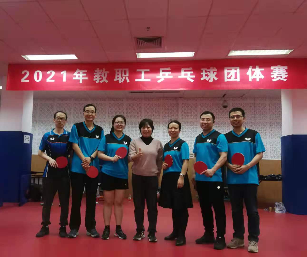 12月4日,由校工会组织的2021年教职工乒乓球团体赛在学校体育馆火热开展。在机关党委的大力支持下、在机关工会的组织号召下,机关体育协会乒乓球队积极组建队伍,踊跃参赛。教职工乒乓球赛赛制为5人制团体赛,机关派出了黄晓明、于晓勇、刘博联、高镇、张振世、马艺展和杨静代表机关乒乓球队参加比赛。队员们在队长黄晓明的带领下,团结协作,奋力拼搏,取得了教职工乒乓球团体赛第三名。